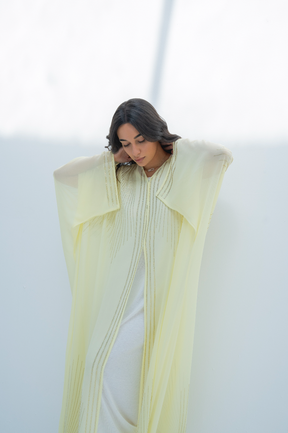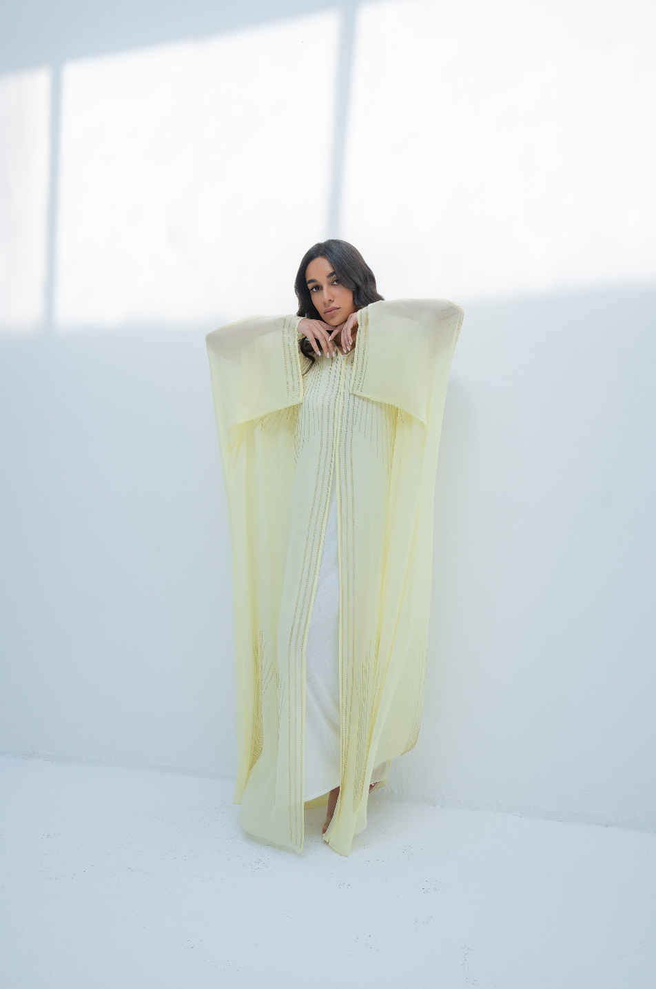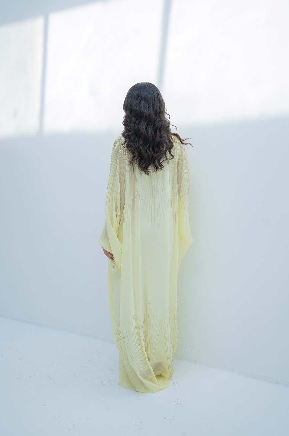 عباية الفراشة باللون الأصفر مع الكريستالات