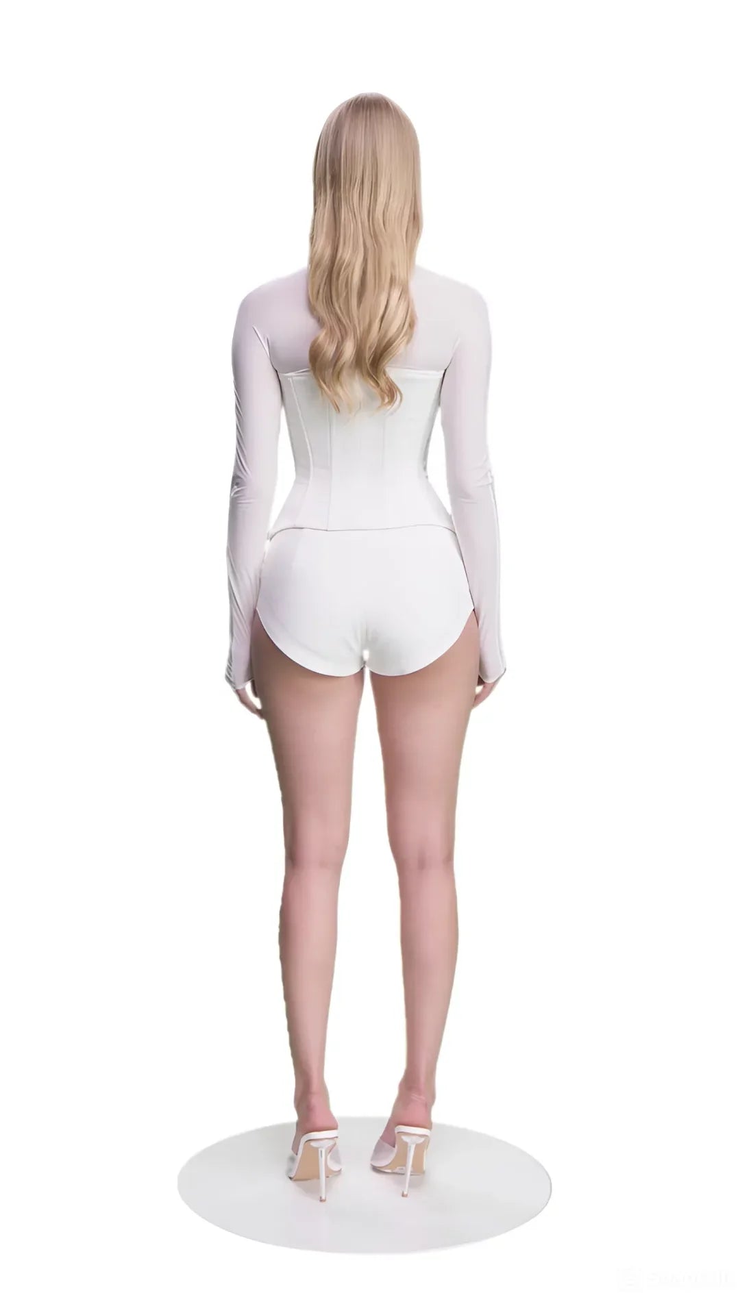 مشد بأكمام باللون الأبيض