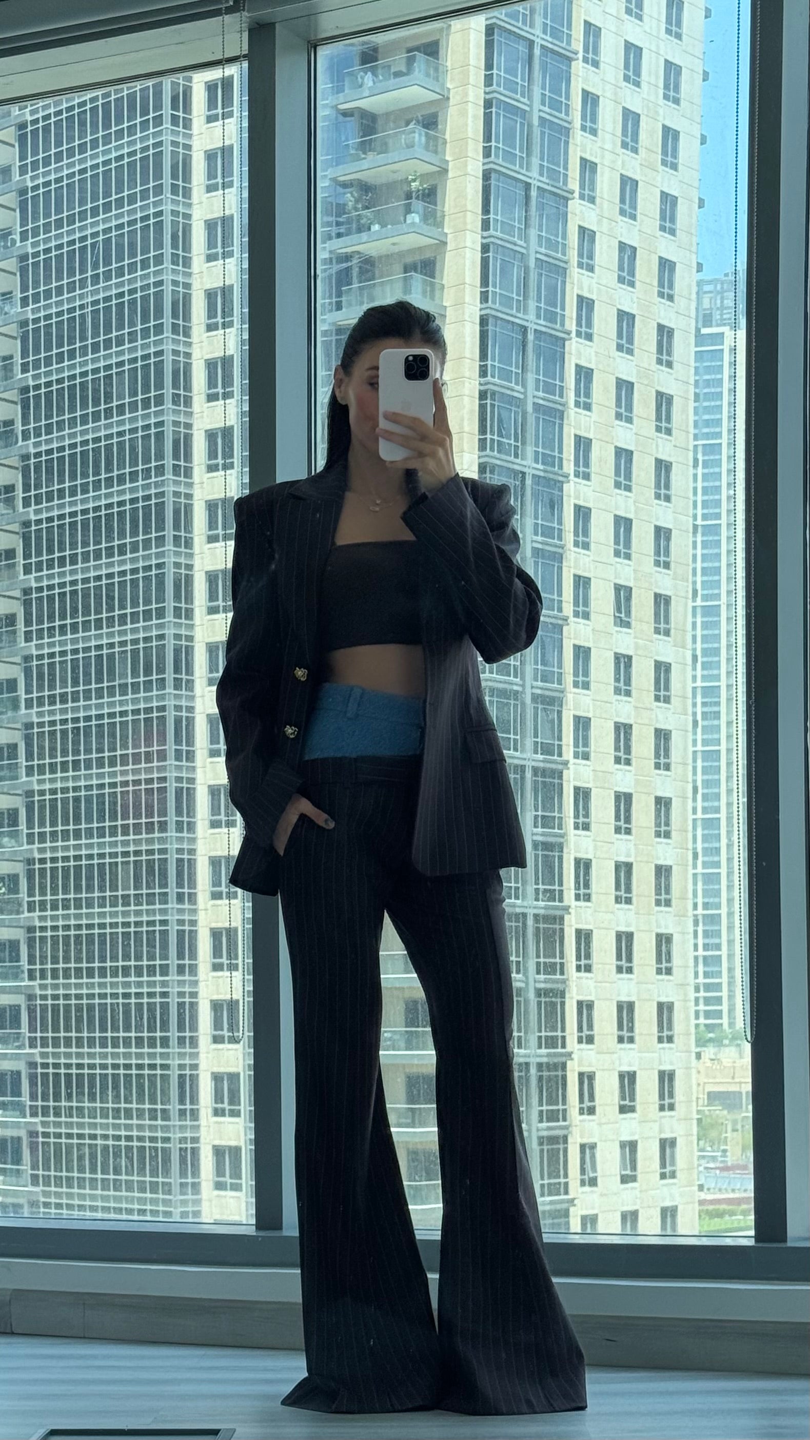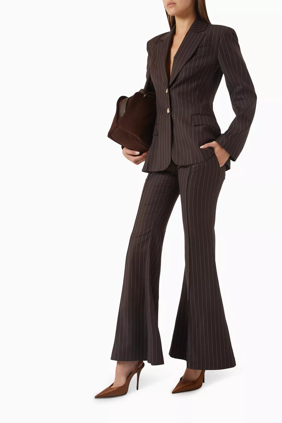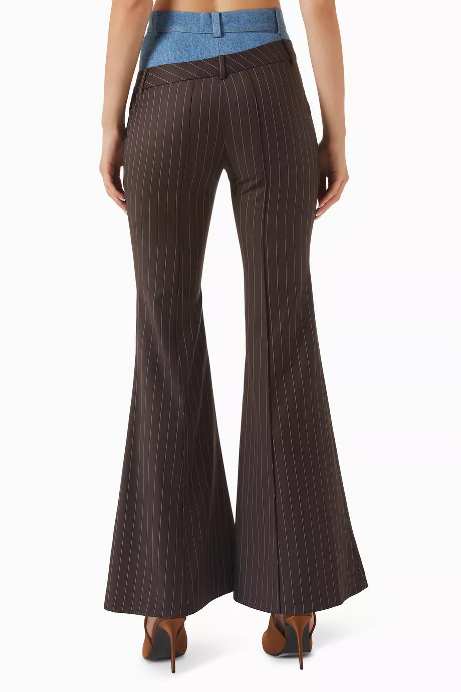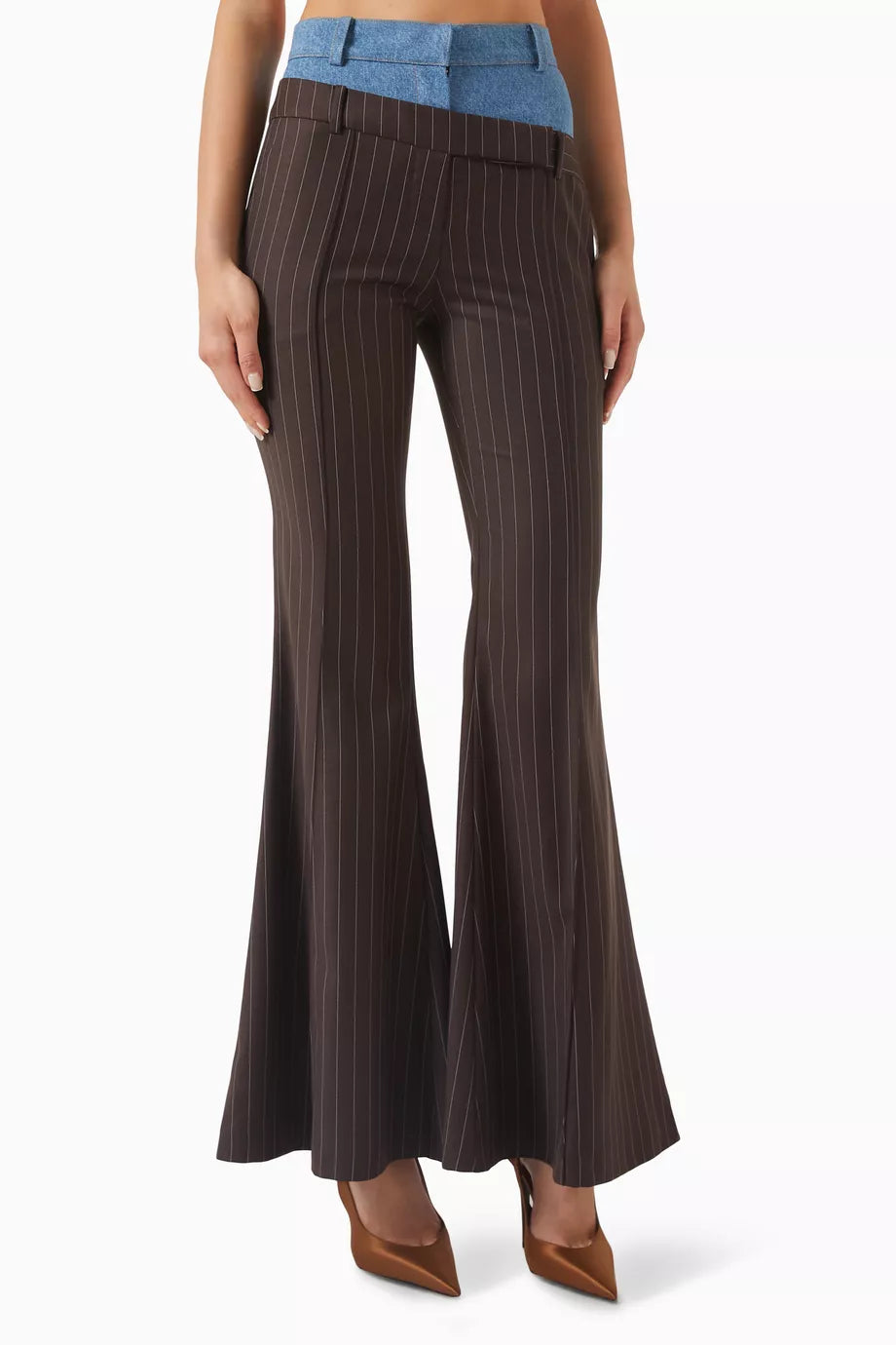 بنطلون مخطط مزدوج الخصر باللون البني والأزرق