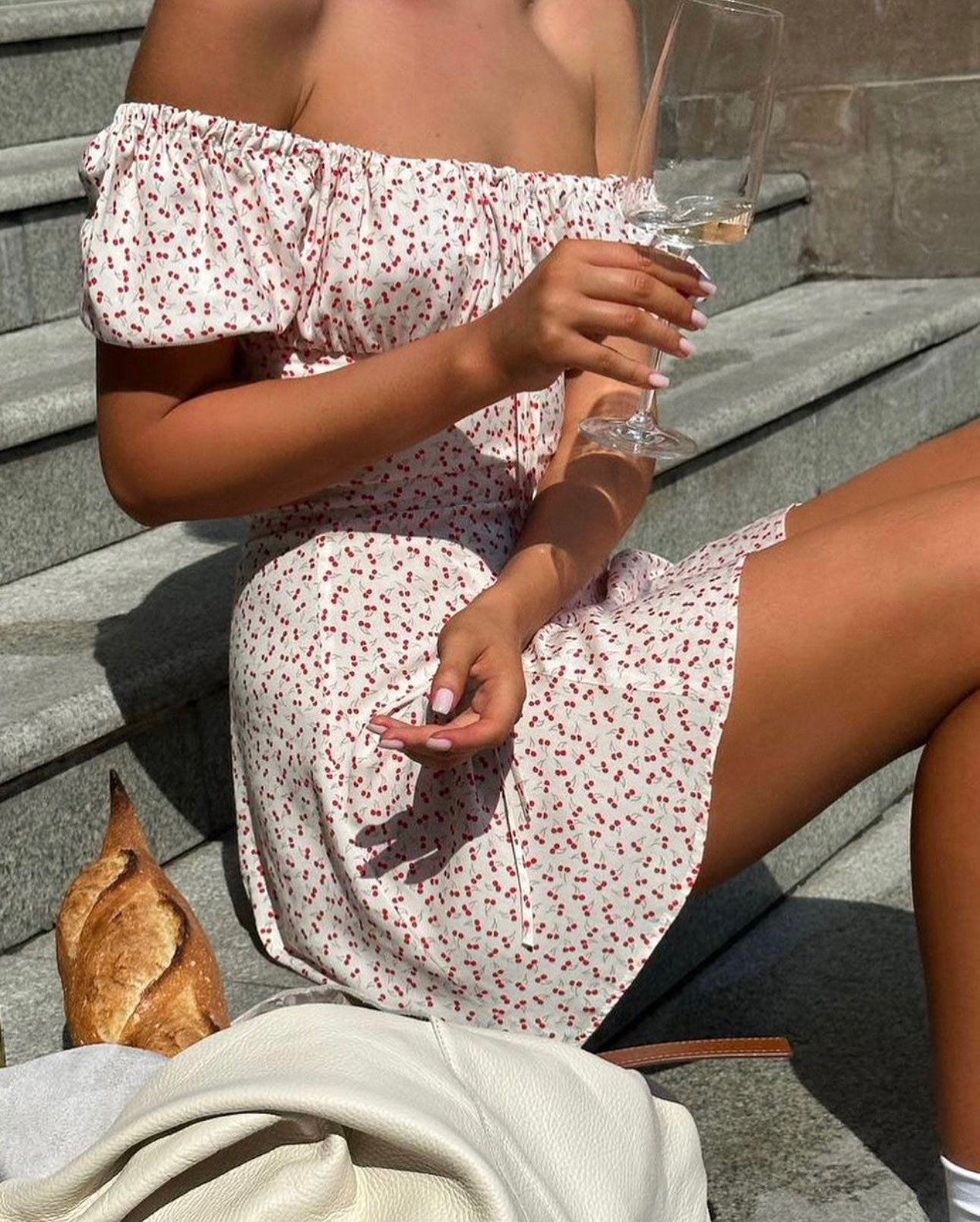 فستان مع الكرز باللون الأبيض