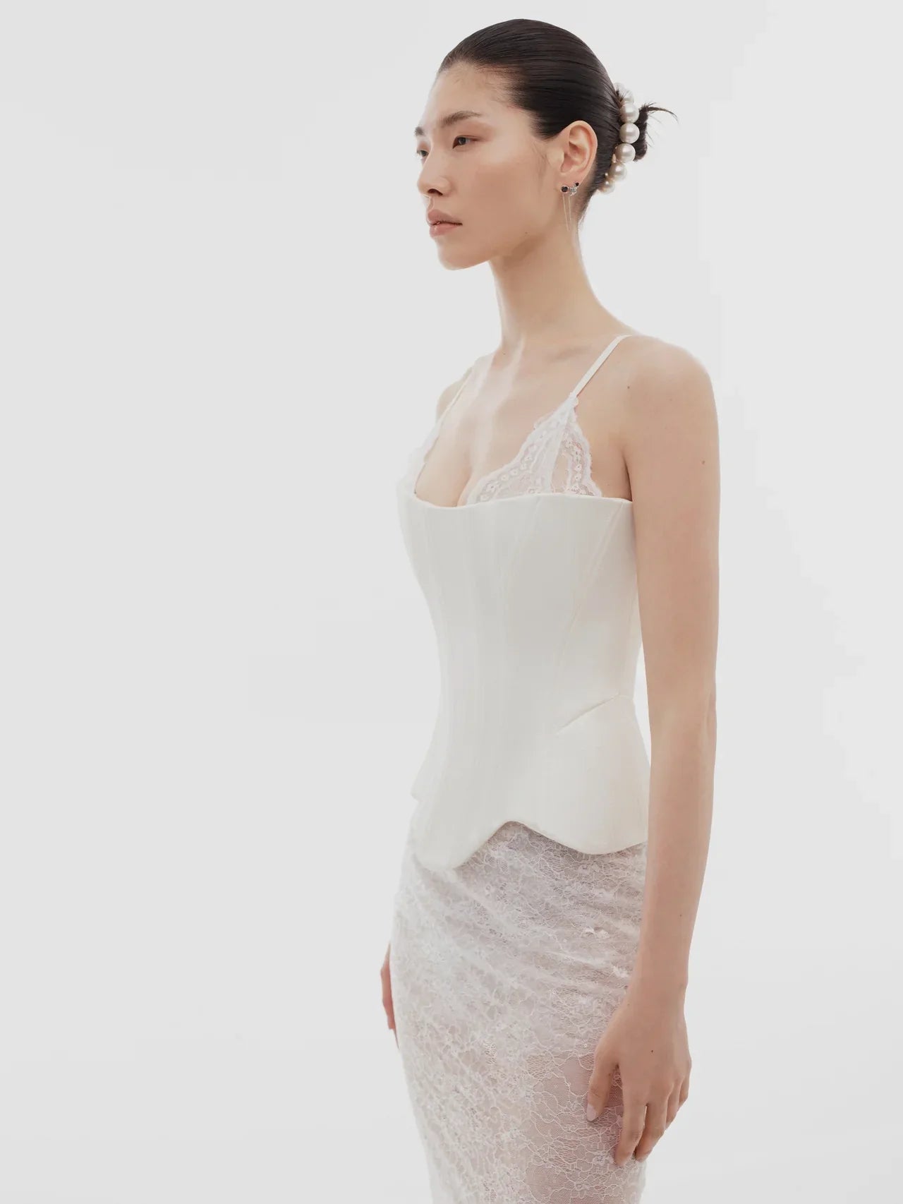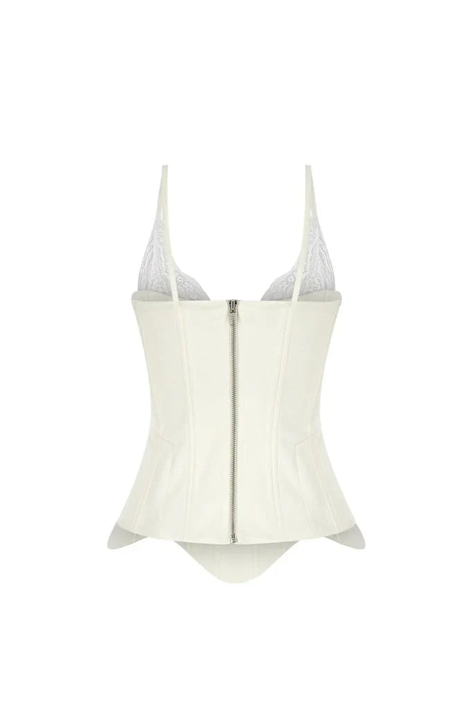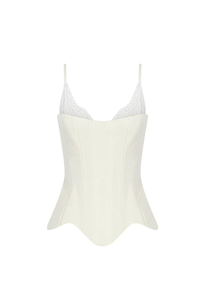 كورسيه مزين بالدانتيل باللون الأبيض