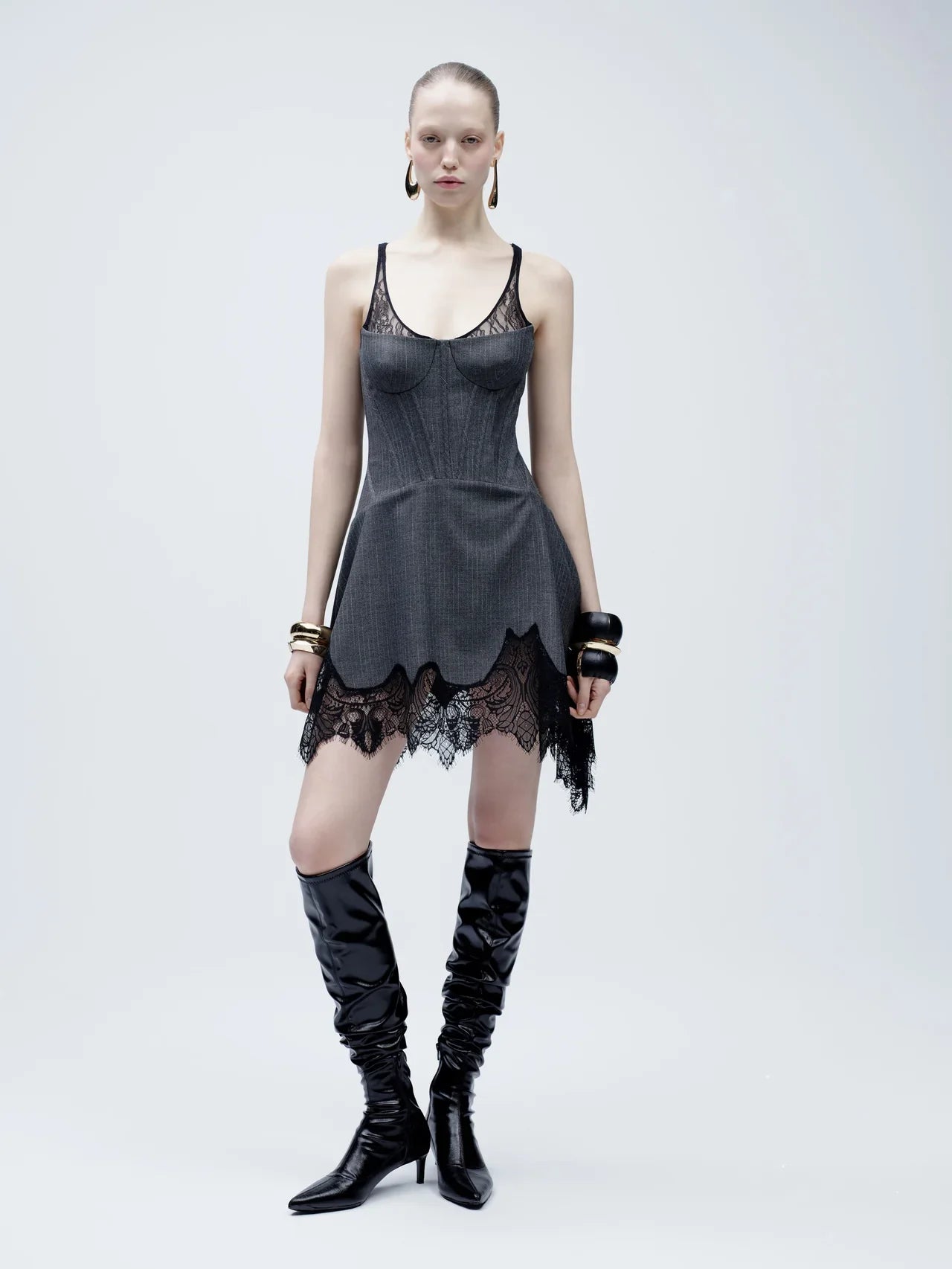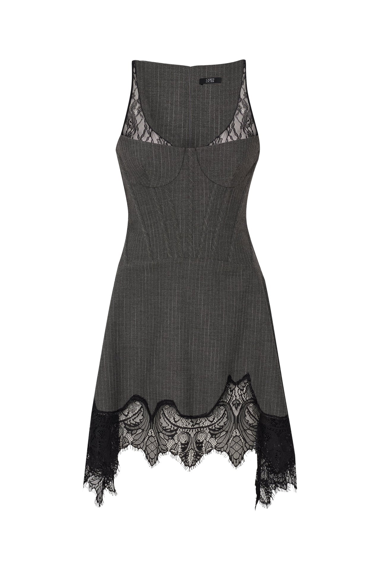 فستان رمادي بتفاصيل من الدانتيل