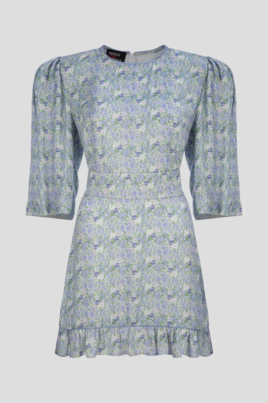 فستان قصير باللون الأزرق / الأخضر مع حزام