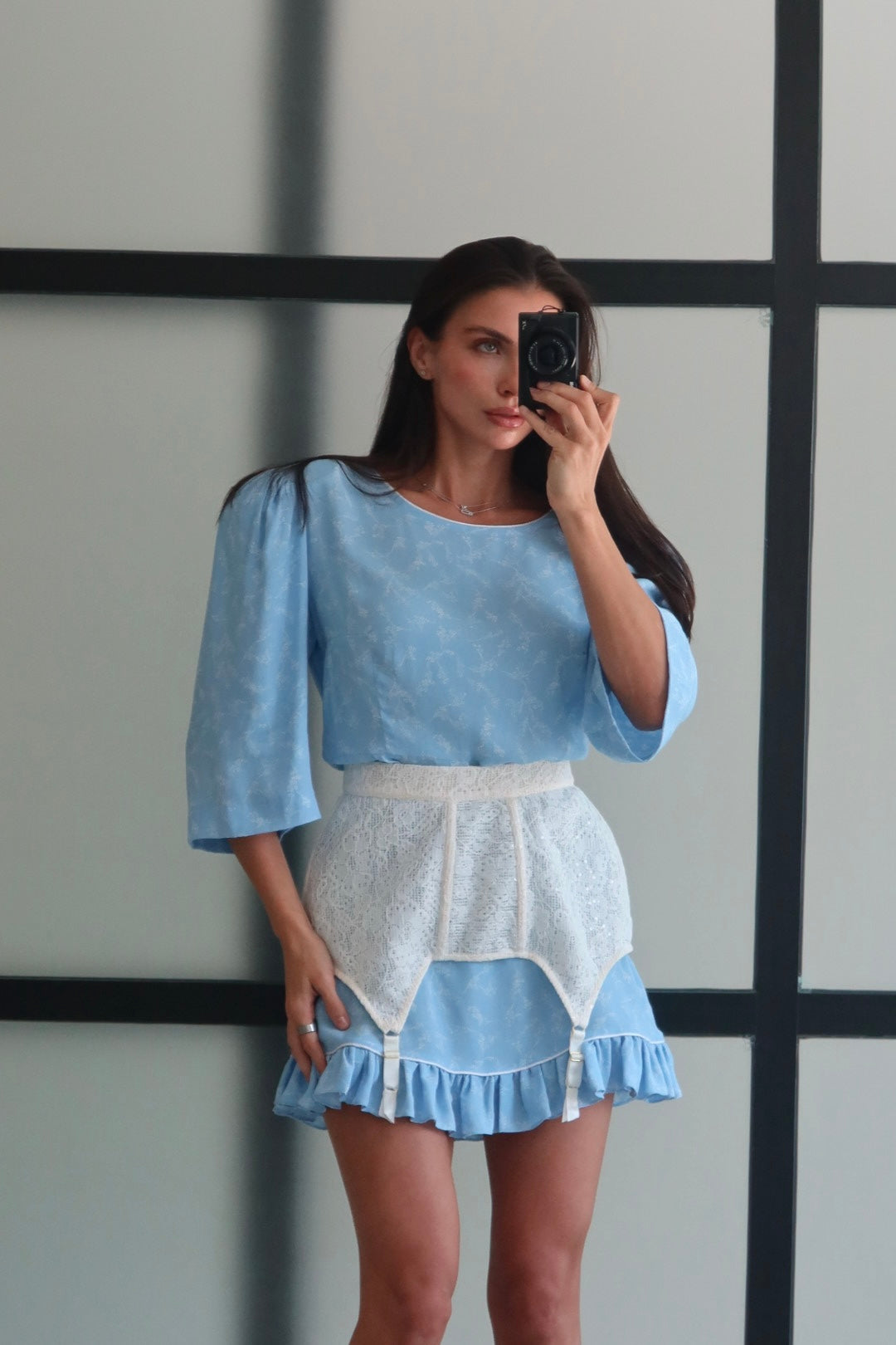 فستان قصير باللون الأزرق الفاتح مع حزام