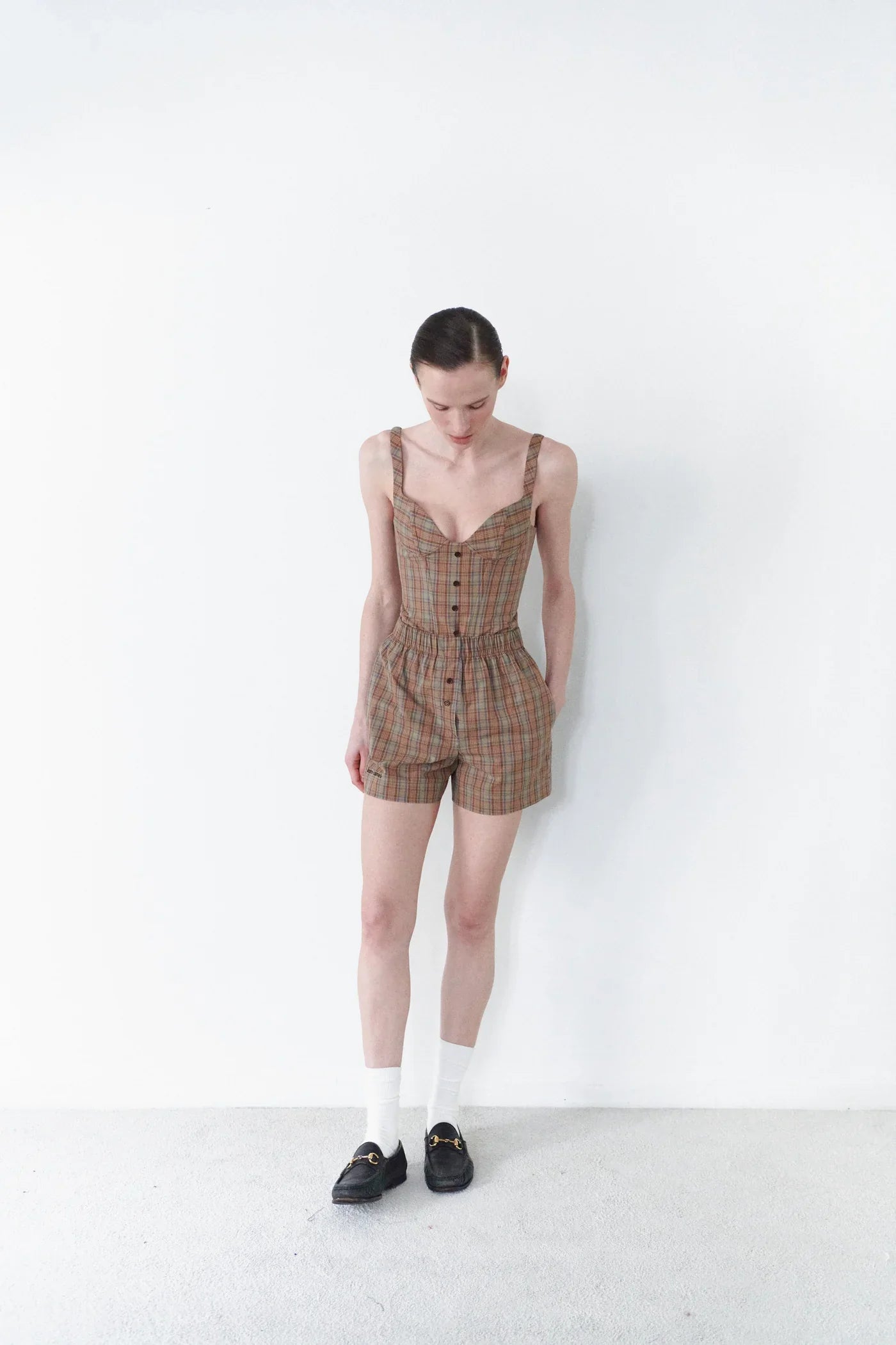 بلوزة كورسيه منقوشة مع تفاصيل أزرار باللون البني
