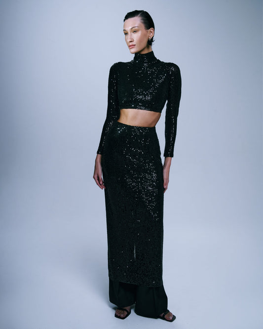 Satin Corset and Long Draped Skirt Two Piece Set in Yellow
