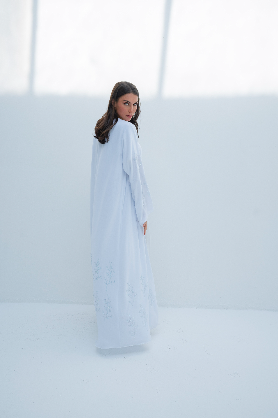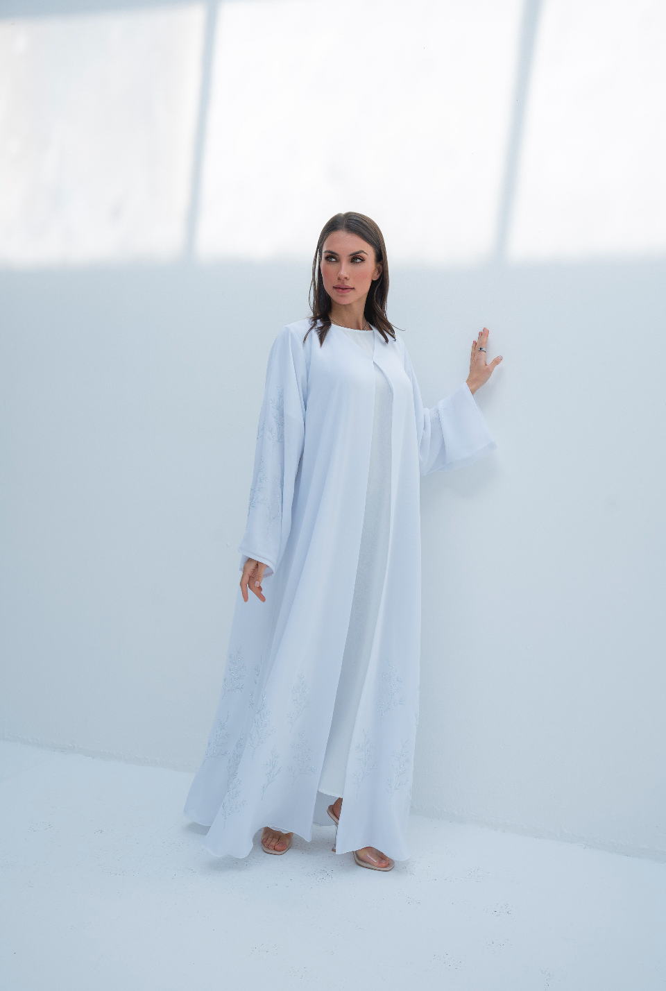 Abaya trapèze blanche ornée de cristaux