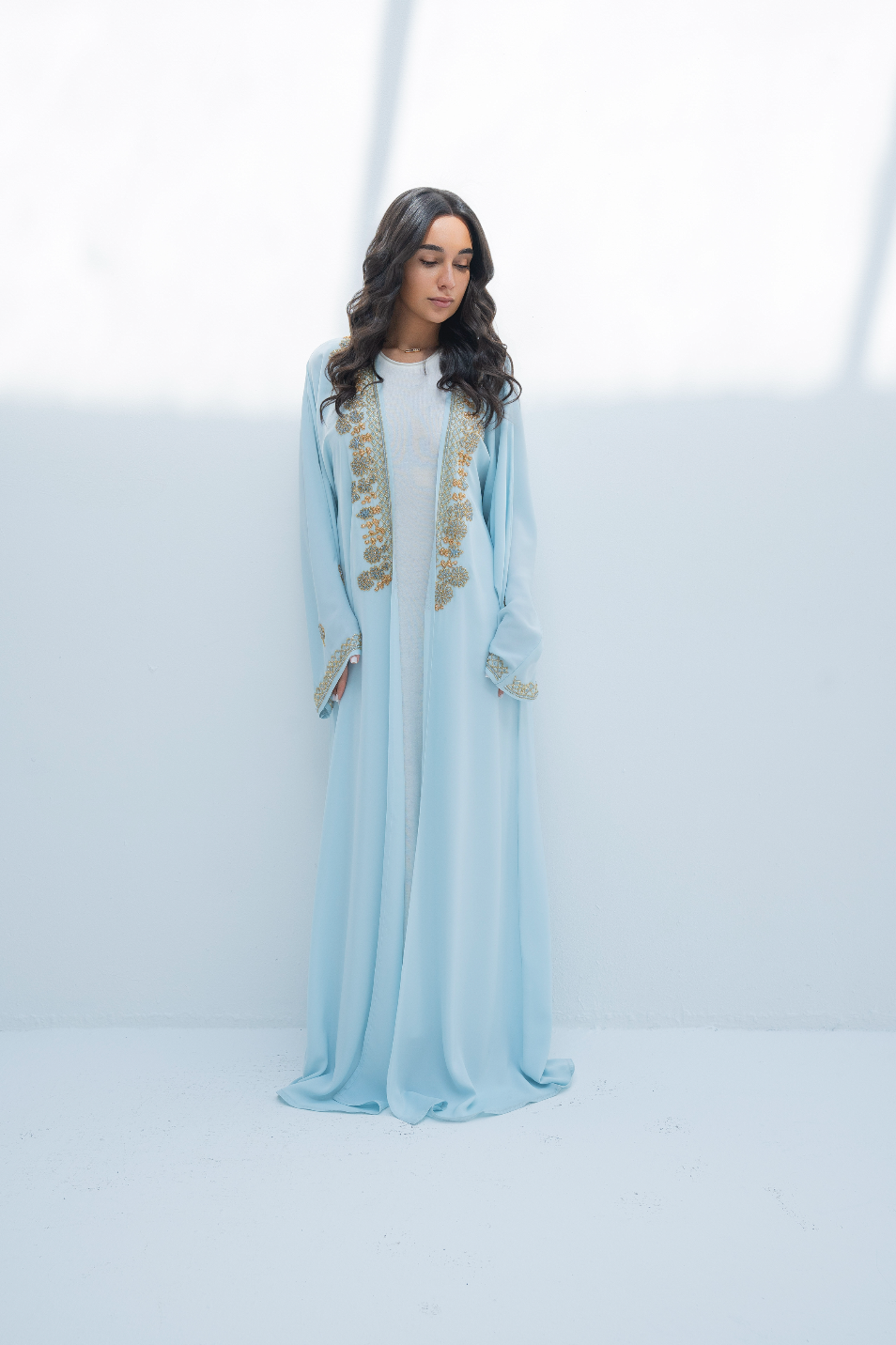 Abaya bleue brodée