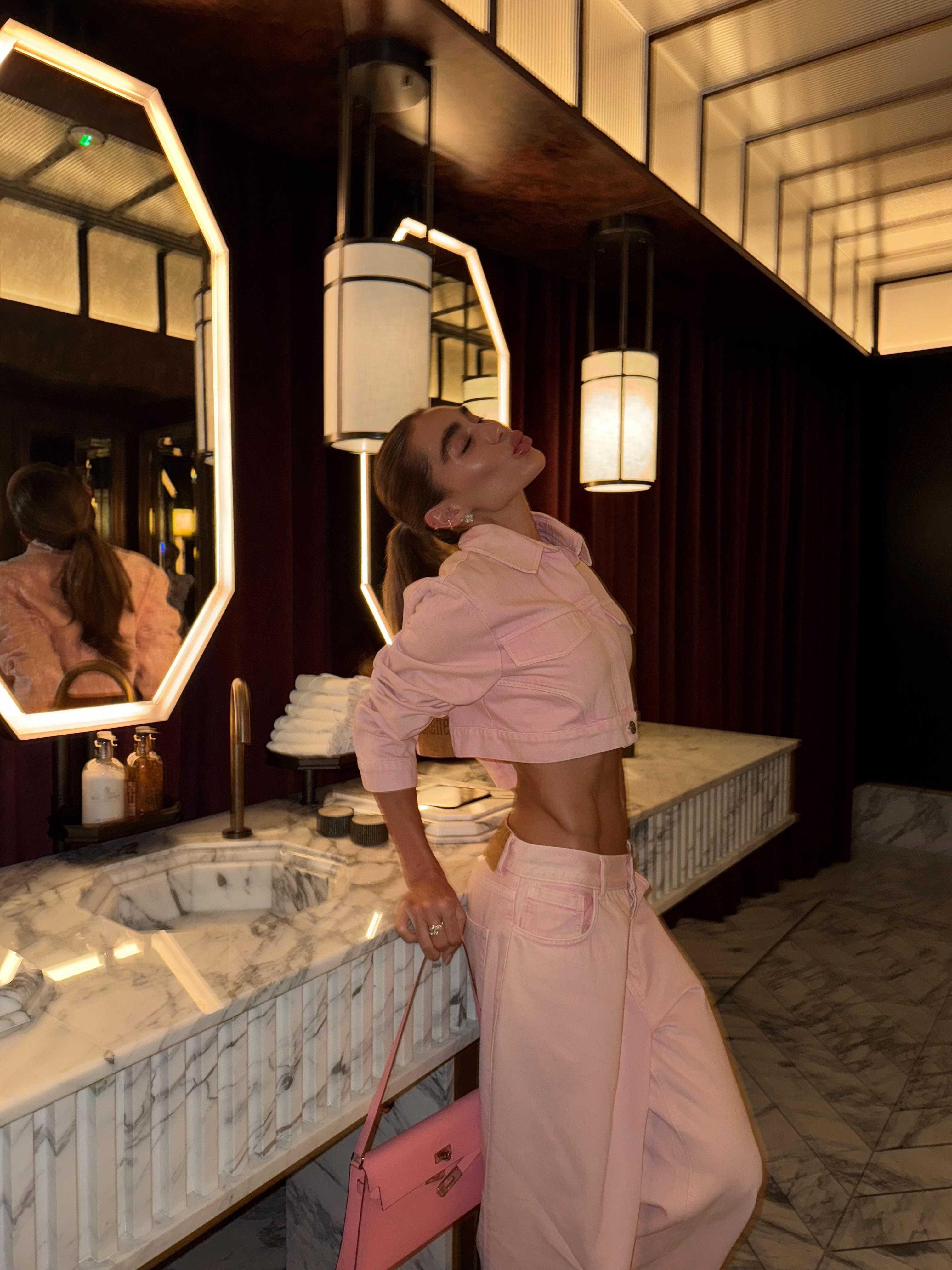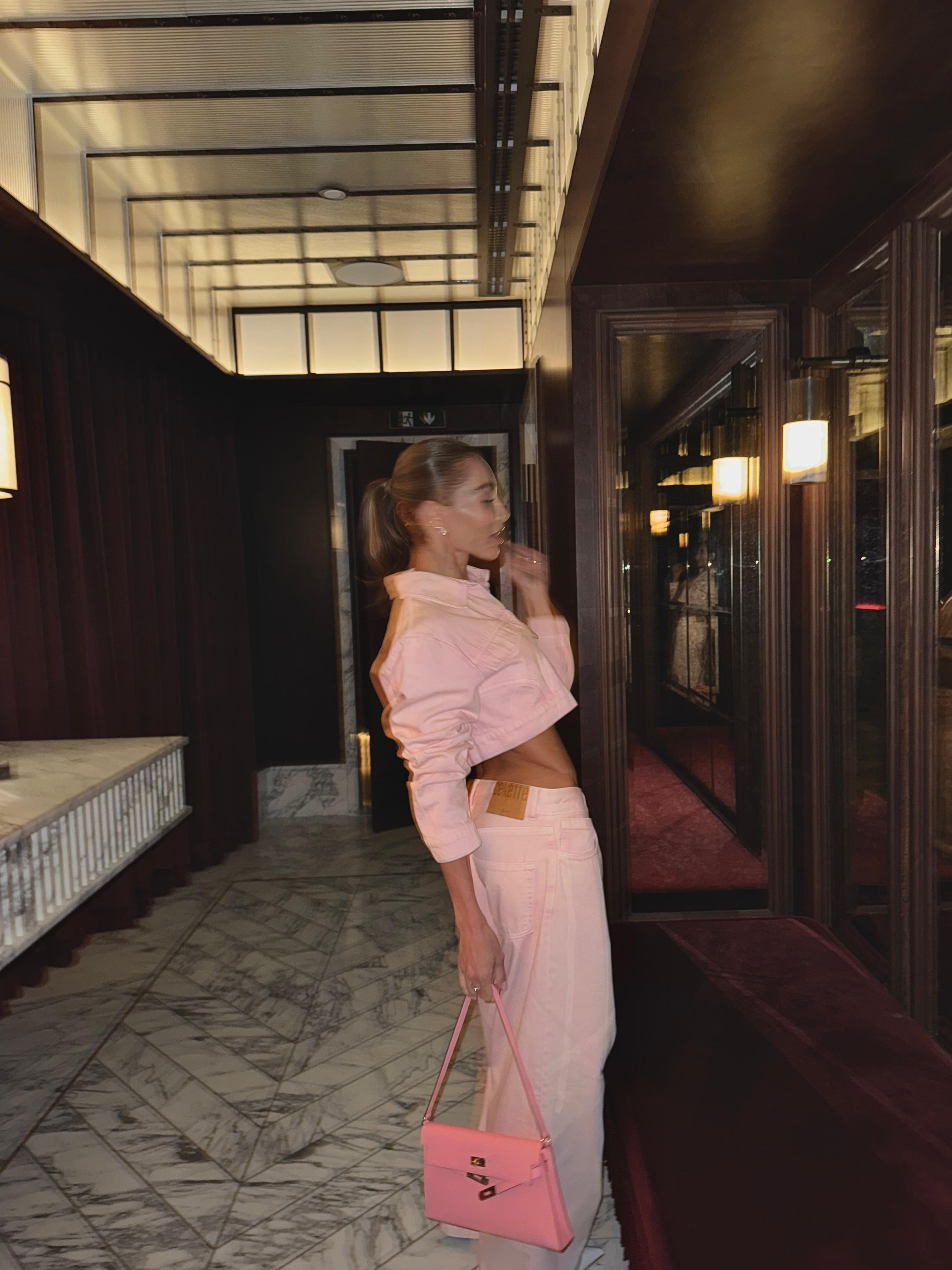 Pantalon taille basse à jambes larges rose pâle