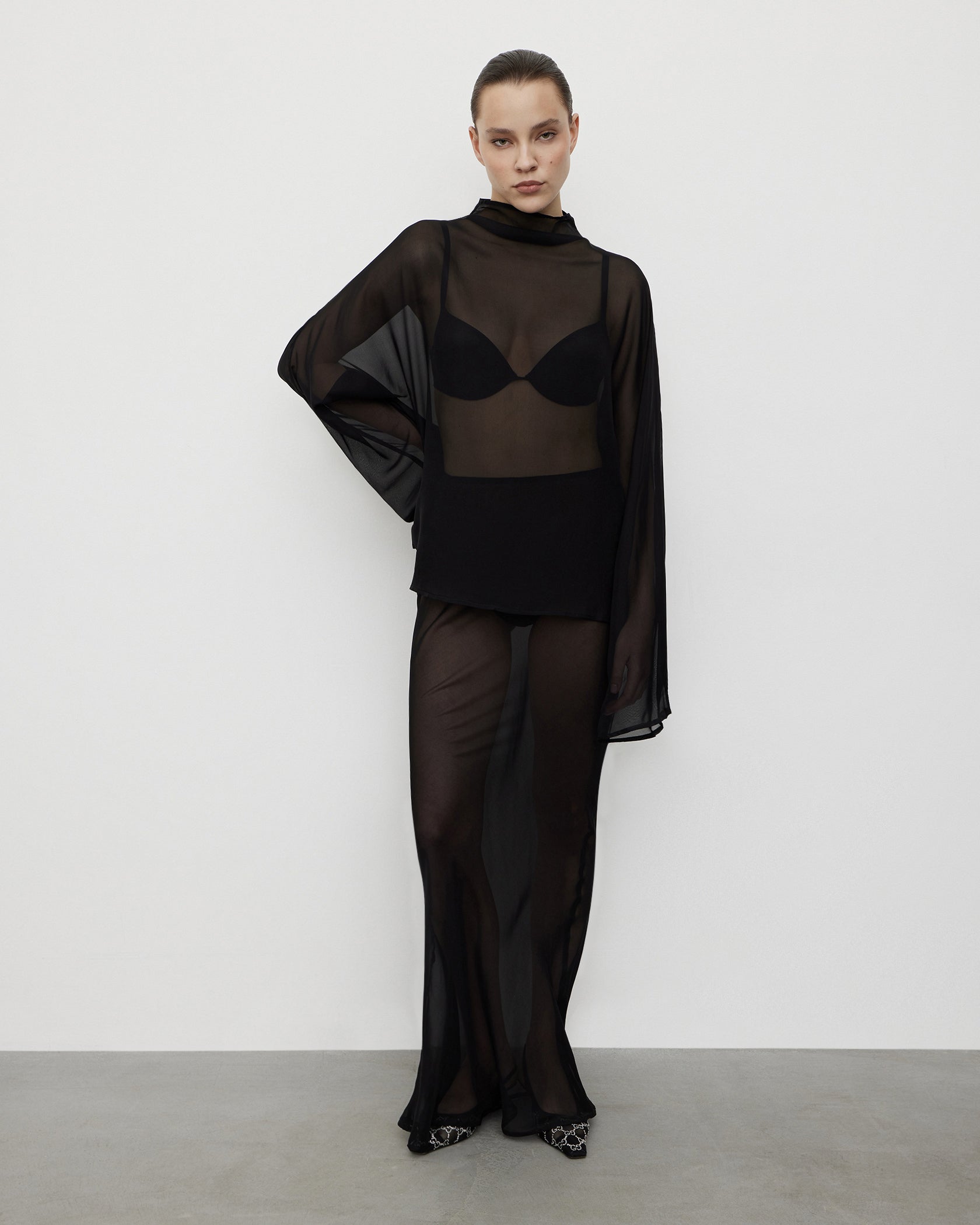 Jupe longue en soie noire
