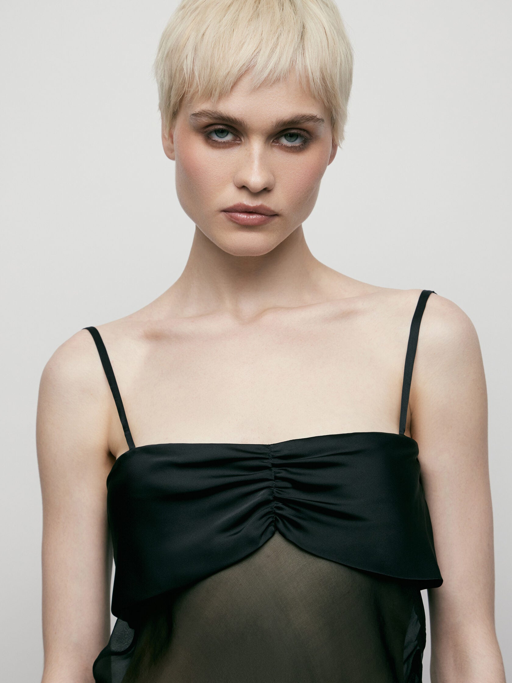 Top en soie et satin noir