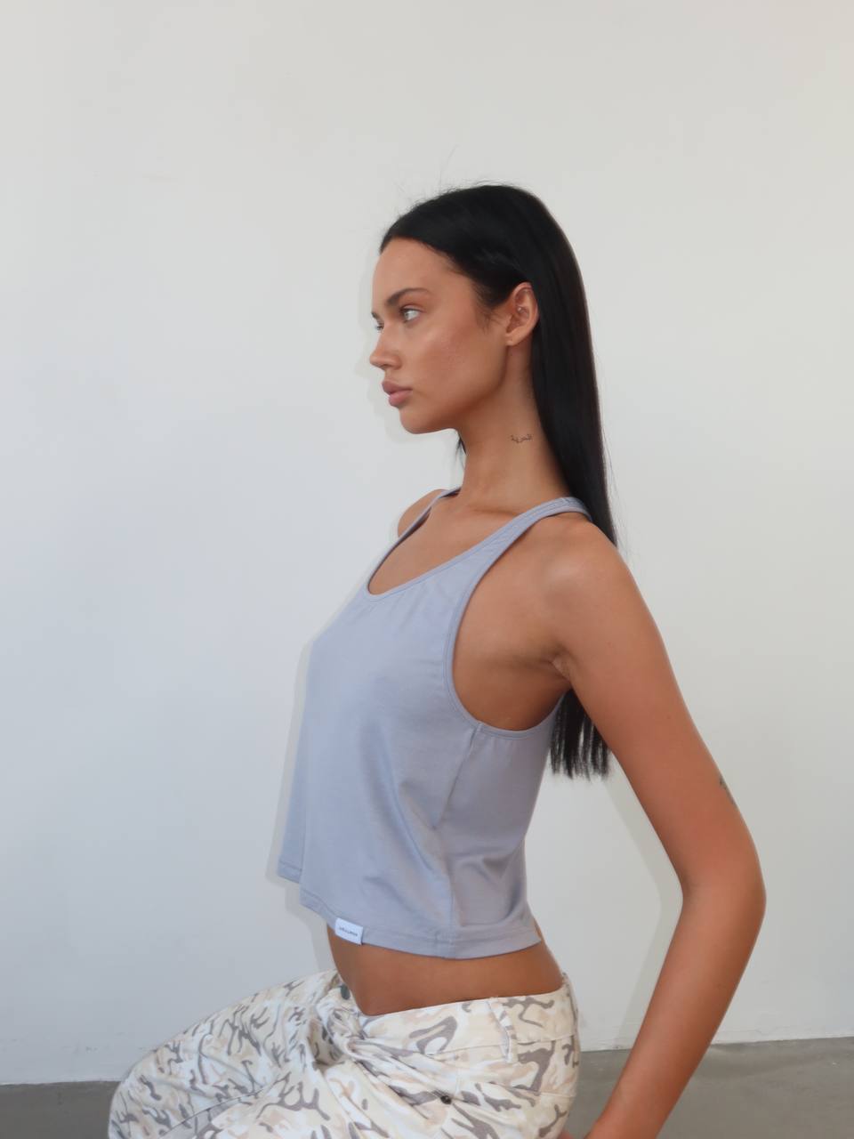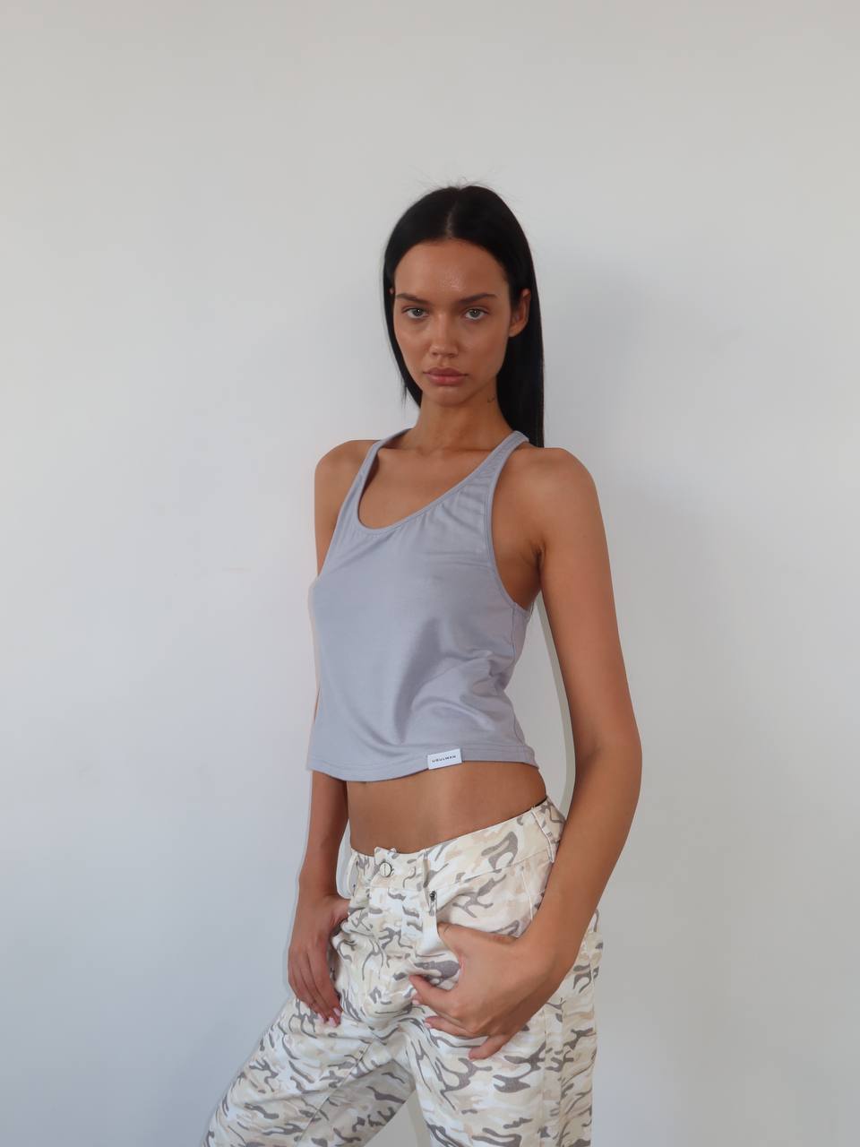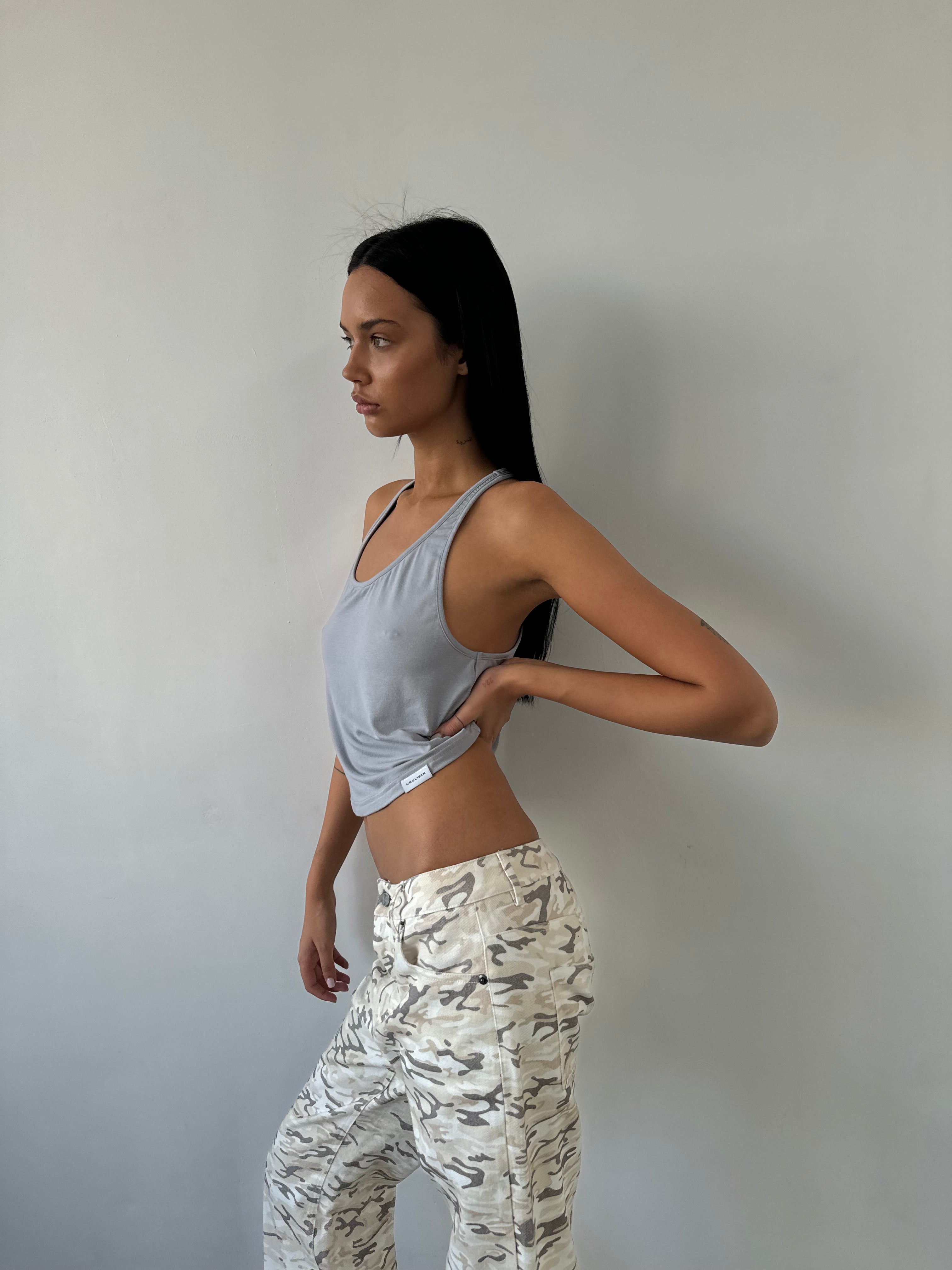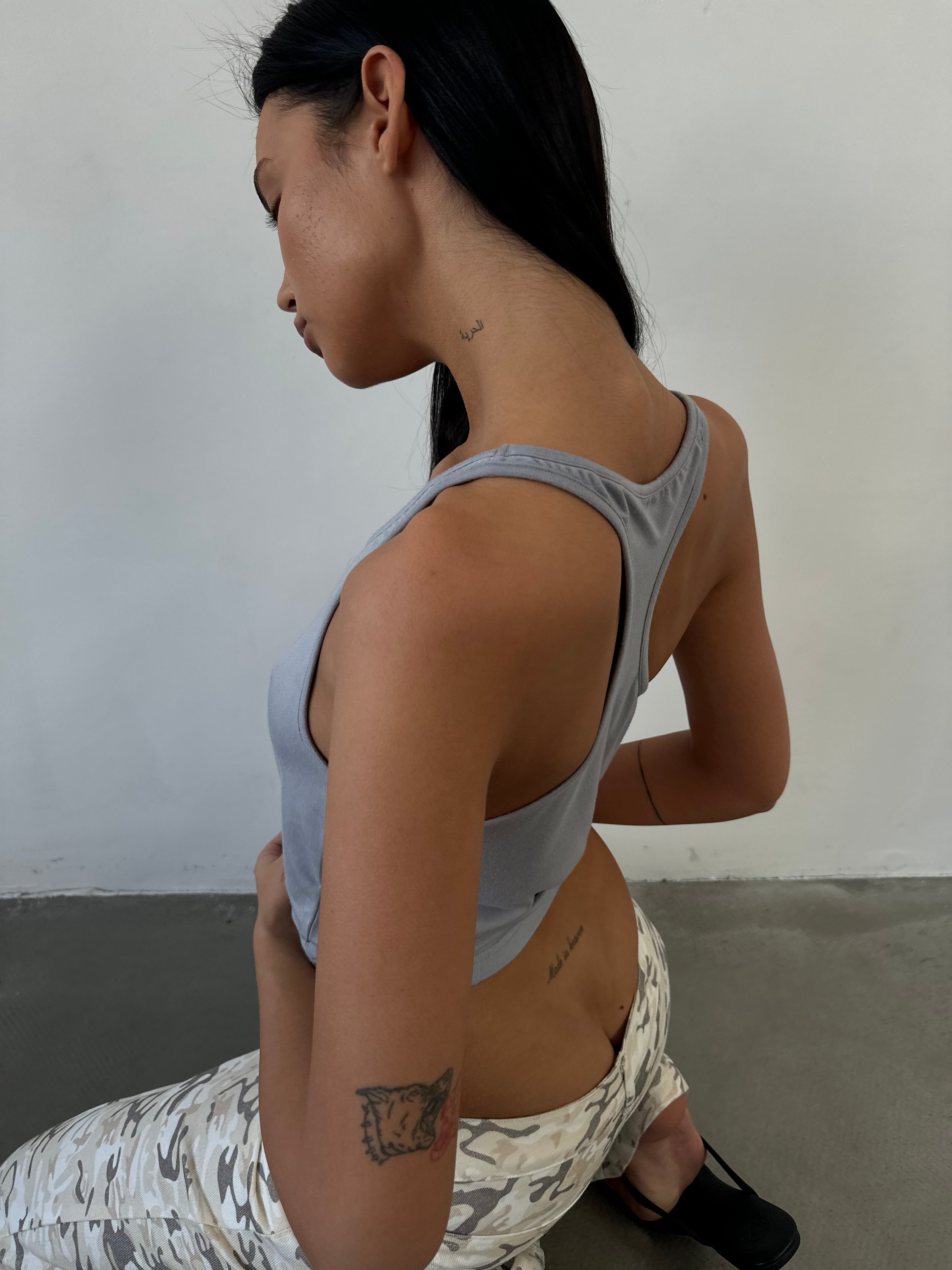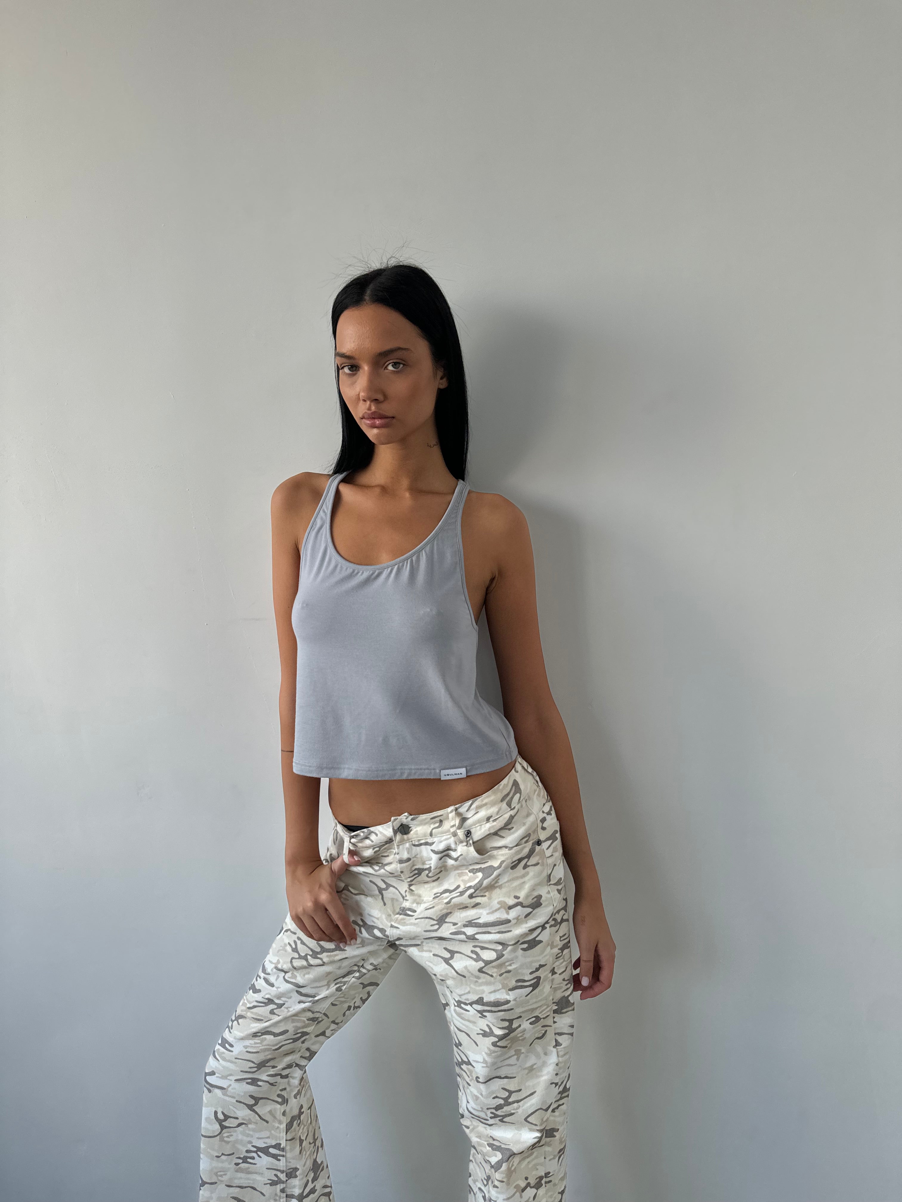 Débardeur gris à fines bretelles