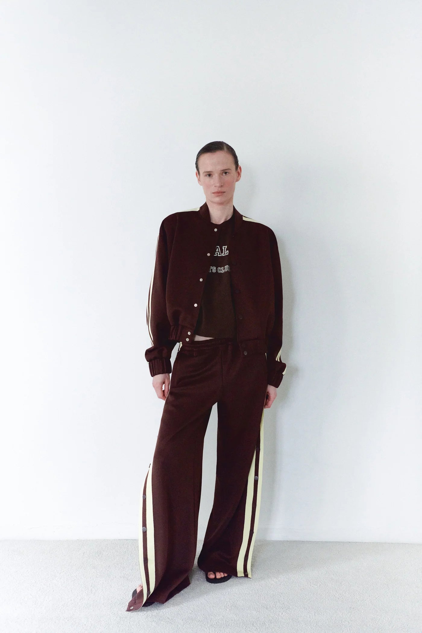 Bomber Jacket with Yellow Stripes in Brown