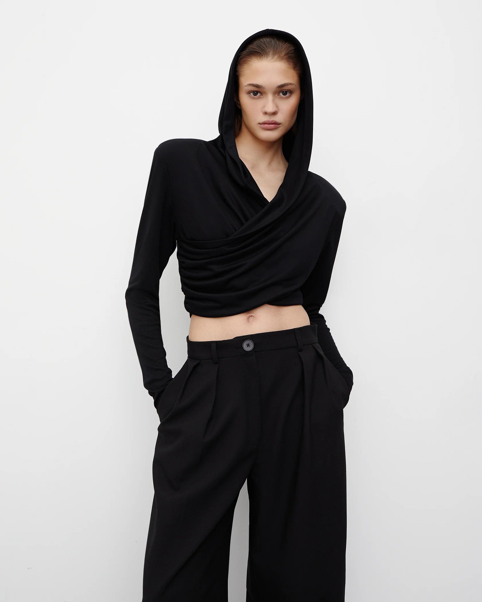 Hooded Top with Sleeves in Black